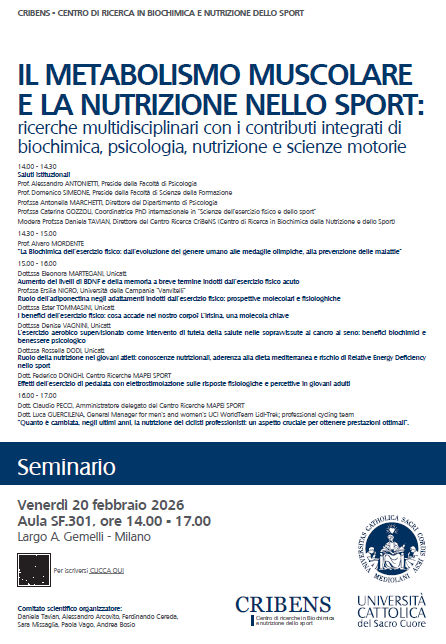Seminario “Il metabolismo muscolare e la nutrizione nello sport” MILANO 20 FEBBRAIO 2026 14-17.