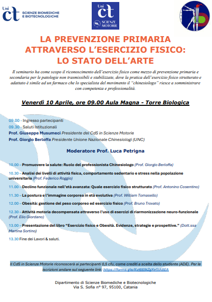 SEMINARIO: "LA PREVENZIONE PRIMARIA, ATTRAVERSO L’ESERCIZIO FISICO: LO STATO DELL’ARTE"